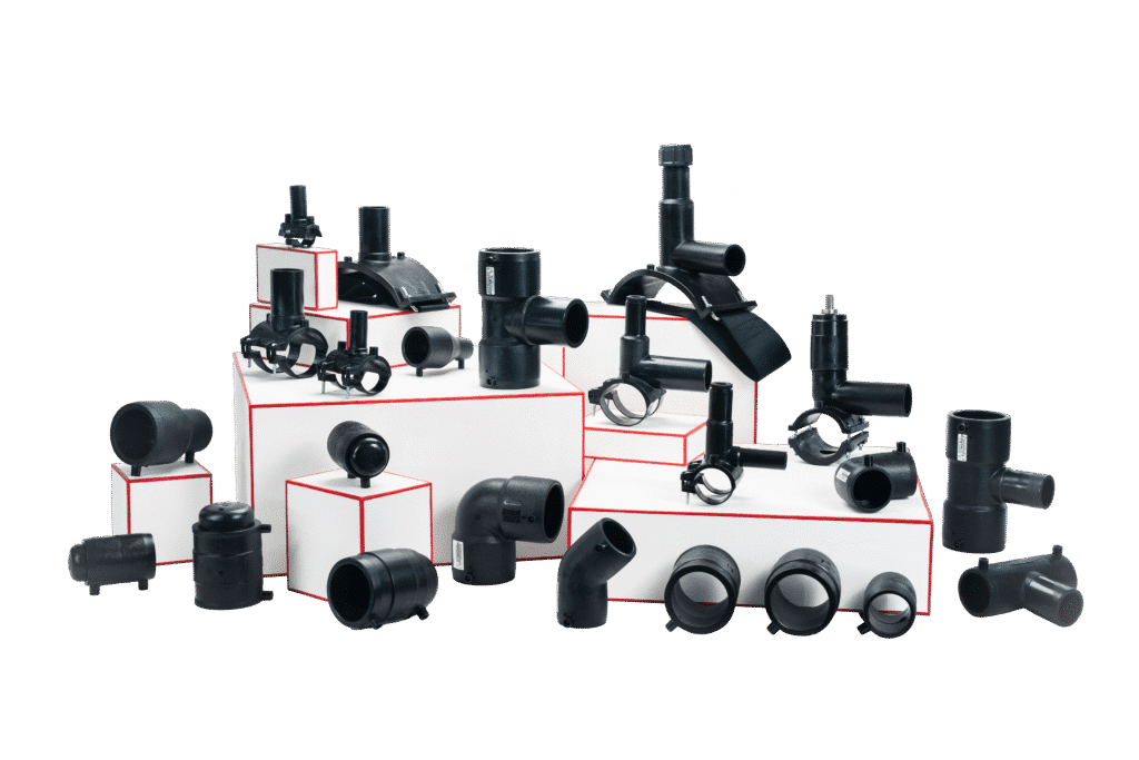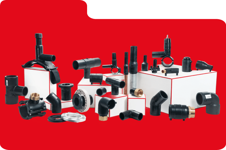PRODUCTS: socket – 90°/45° elbow – 90° tee – 90° reduced tee – cap – reducer – spigot/tapping saddle